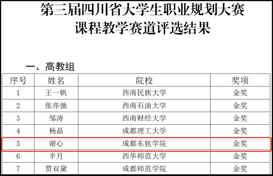 此次获奖,不仅体现了成都东软学院教师在职业规划课程教学领域的创新实力,更是学校长期重视学生职业规划教育、扎实推进就业指导课程建设的生动实践。学校将以此次大赛为契机,不断深化大学生职业生涯规划与就业指导课程改革,创新教学模式、强化师资队伍建设,进一步完善协同育人机制,为助力更多学子实现高质量充分就业、培养适配产业发展需求的高素质人才筑牢保障。