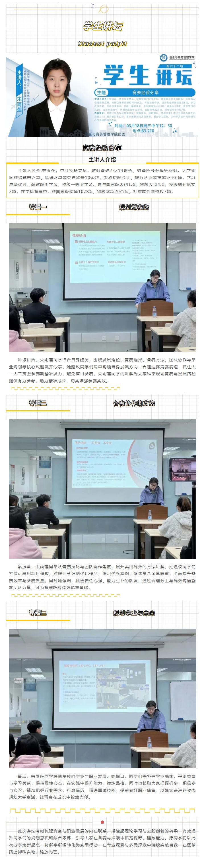 学生讲坛 | 宋雨莲同学—竞赛经验分享