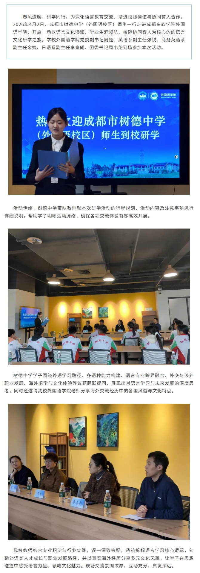 校际研学聚东软,语言交流启新程 | 树德中学(外国语校区)赴我校开展研学活动