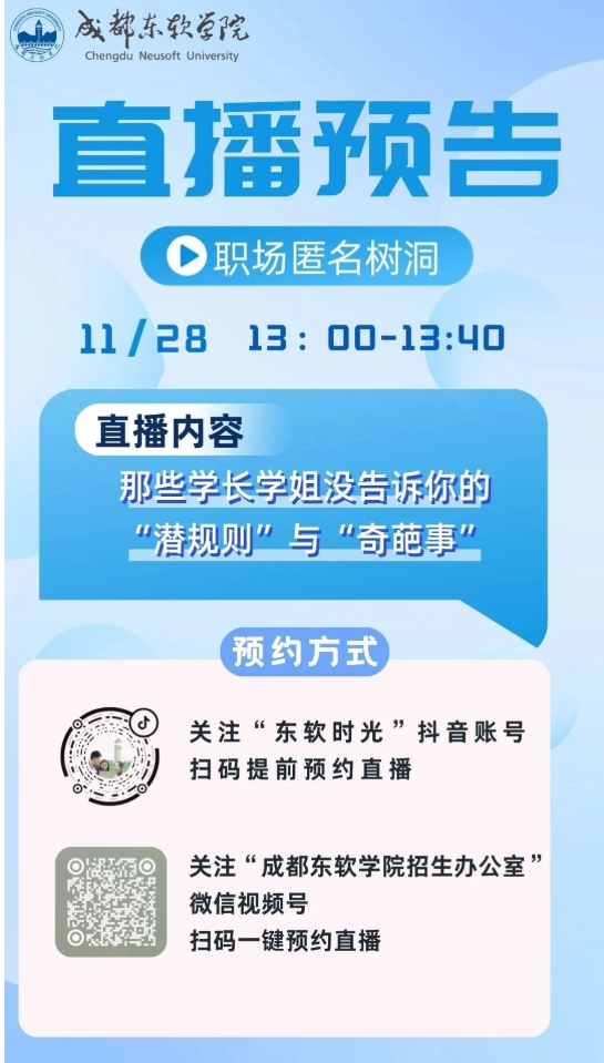 🎥 微信视频号搜索“成都东软学院招生办公室”