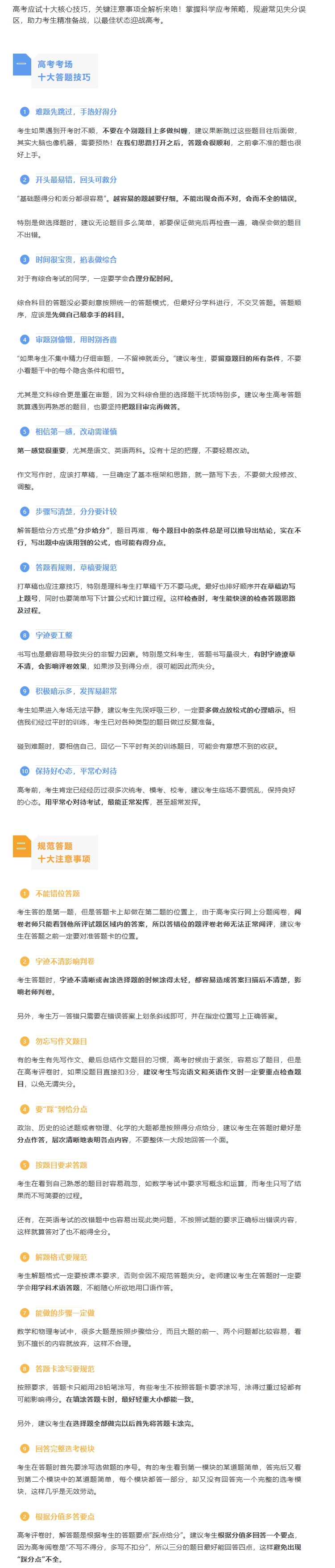 【高考冲刺指南】高考十大答题技+与注意事项,收藏!